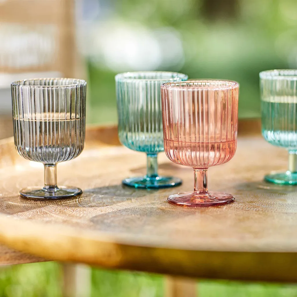 Chice Gläser wie das geriffelte Chelsea Weinglas im 6er-Set werten jede schlichte Tischdekoration im Handumdrehen auf und rund den formvollendet gedeckten Tisch perfekt ab. Ob Sie die Trinkgläser dabei Ton in Ton eindecken oder farbige Akzente setzen, bleibt ihrem guten Geschmack und dem Anlass überlassen. Weitere moderne Farben und passende Wassergläser erhältlich, ideal zum Kombinieren.