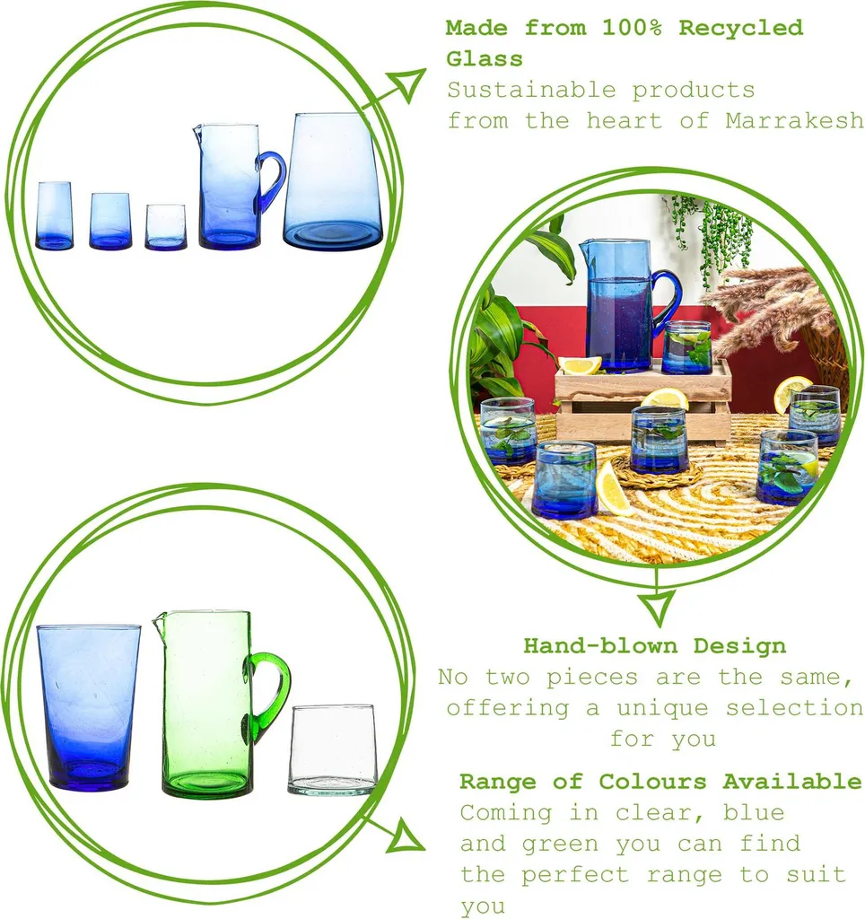 Jedes Stück in dieser Sammlung wurde mundgeblasenem im Herzen von Marrakesch mit 100% recyceltem Glas. Das Ergebnis ist ein authentisches Stück Geschichte, jeder mit seiner eigenen einzigartigen Geschichte zu erzählen.