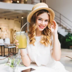 Gläser mit Deckel und Strohhalm im Detail