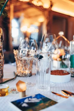 Dieses Glas ergänzt die Weingläser als geschmackvoller Begleiter, um stilles oder kohlensäurehaltiges Mineralwasser und alkoholfreie Getränke stilvoll zu servieren. Die Kohlensäure wird gleichmäßig harmonisiert und die Säuren und Mineralelemente hochwertiger Quellen werden erfrischend auf der Zunge und am Gaumen platziert, ohne aufdringlich zu wirken.